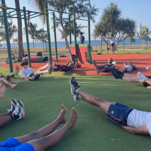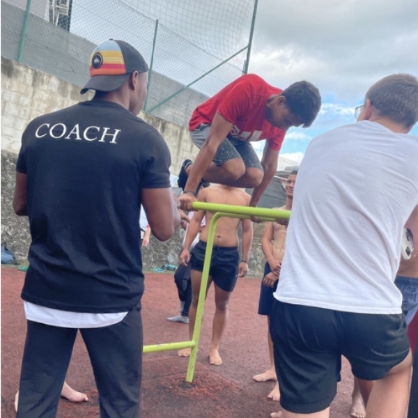 The Bek La Barre coaching team is made up of Angelo MERION (3rd at the 2023 world championships), Guillaume LUCAS and Bryan HIREL (socio-athletic manager). They work on the ground in the priority neighbourhoods of Le Port, Saint-Louis and Saint-Pierre, offering street workout sessions to young people in these areas. Over time, these sessions enable young people to acquire physical skills through body-building exercises (strength, endurance, flexibility, etc.). But they also have a social dimension, promoting autonomy, initiative-taking and the inculcation of values (self-confidence, self-esteem, honesty, etc.) and principles (respect for others, surpassing oneself, etc.).